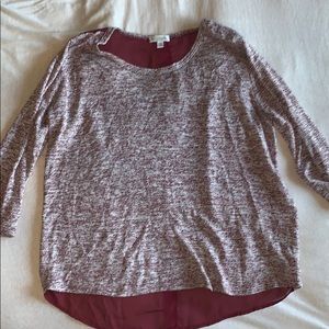 Charming Charlie- 3/4 length sleeves heathered maroon front, sheer back with buttons