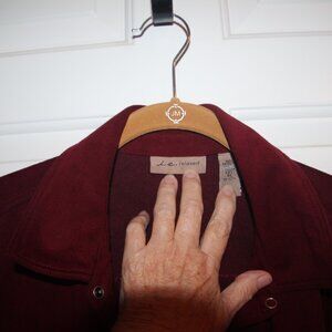 Shirt/jacket maroon, faux suede. Size XL. i.e. Relaxed brand. Good condition.