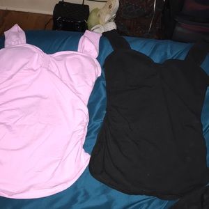 One is all pink. The other is all black. They are tank top like. They are Stretchy