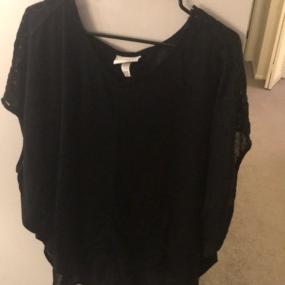 One green one black shirt. Exactly the same. Back is lower then the front with lace sleeves. Both are sheer and need a tank top underneath. 2x-3x. Excellent condition. Please make an offer. Both for 15 or one for 8.