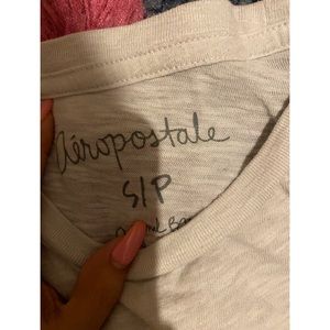 These are three Aeropostale shirts they are very nice but the white one just has a small stain but can easily be washed just send me an offer for all three of them:)