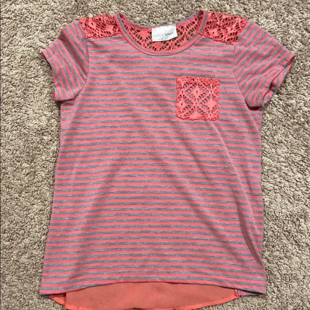 Juniors top- coral color with grey stripes