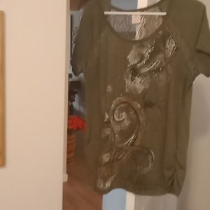 a beautiful Green top with flowers on it and interesting designs! size XL 16 to 18.