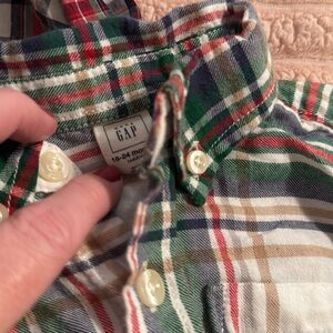 2 holiday baby button ups from Baby Gap both size 18-24 months. EUC just need to be pressed! The green plaid feels almost like a lightweight soft flannel. Animal friendly, smoke free home. Offers welcome and will separate if interested!