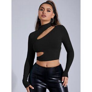 Shirts Women Black Cutout Mock Neck Long Sleeve Crop Tee Shirts Tops