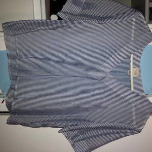 Pink and navy blue flannel $10 Blue and white thin striped see-through top $5 Grey long sleeve shirt $5 Brown with little flower-like pattern long sleeve shirt $5