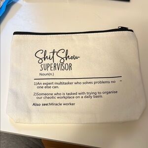 Canvas pouch with humorous text. Perfect for organizing essentials. Zipper closure.