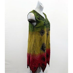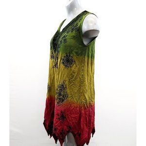 Shiva Fashions Women's Boho Sleeveless Dress One Size V Neck Multicolored Emboid