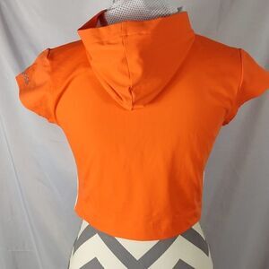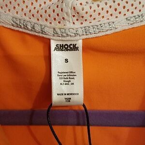 This New with tags Shock Absorber full zip cropped hoodie. With white mesh inside hoodie and down each side of top. Bright orange. Look hot smooth fit for a sleek look, stay cool high performance fabric wicks away moisture to keep you dry. All offers welcome.