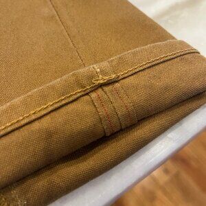 I absolutely love these pants, but they're just a bit too slim for me. Exceptional quality from a small, USA brand--only 78 pairs made. The material is a duck canvas with a subtle red selvedge ID stripe. Fit is tapered slim, but with plenty of space in the waist and hips. Button fly, slant pockets in the front and patch pockets on the back, and quality rivets all around. No major flaws other than one or two small picks in the fabric, not sure of prior use. Can't speak highly enough of these, they're a steal. Retail was $225.