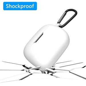 Shockproof Silicone Protective Charging Case for JBL Tune 230NC Earbuds w/ Keychain White