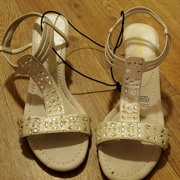 Low open toe wedge with beautiful stone outline. Never worn.