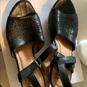 This beautiful Clarks sandals was rarely used. Very comfortable. Will last a very long time.