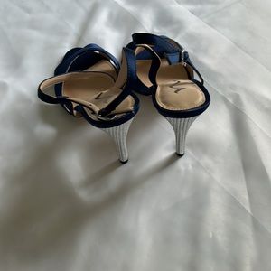 Nina Navy Blue Luster Satin. Size 6.5M. Never worn.