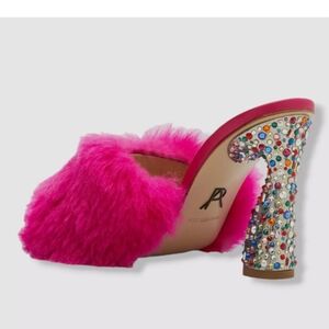 $1595 Paul Andrew Women's Pink Shearling Jeweled Mule Sandal Shoes 39
