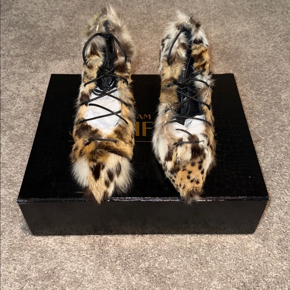 100% Lynx Fur Pump with removable waxed leather laces