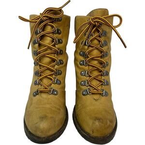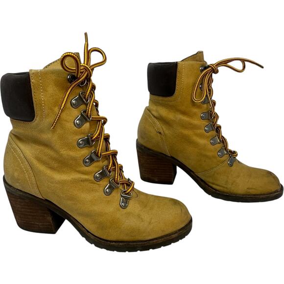 Shoe Cult Nasty Gal Lace Up Boots SZ 6 Tan Granny Western Logger Packer Grunge