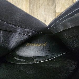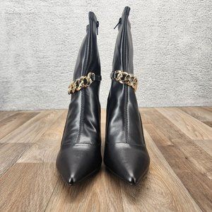 Shoe Dazzle Ayson Women's Size 10 Black High Heel Pointed Toe Zip Booties Chain