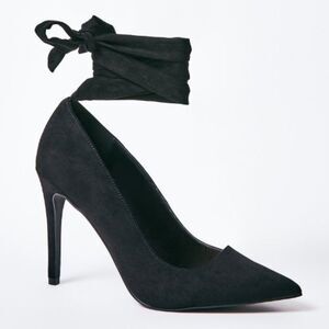 Elegant black heels with ankle tie. Sleek and stylish design. Perfect for any occasion. These are labeled a 12 but are so small for more like an 11