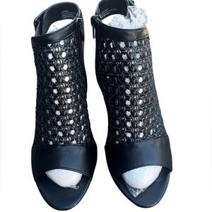 Shoe Dazzle Black Open Peep Toe Ankle Block Woven Heeled Dressy Sandal Size 7.5
