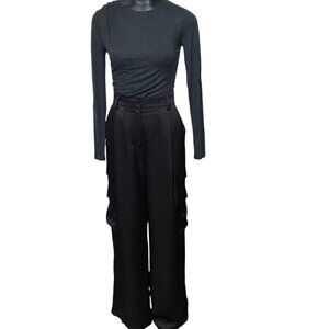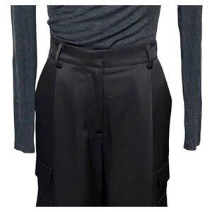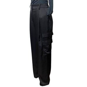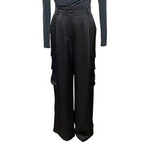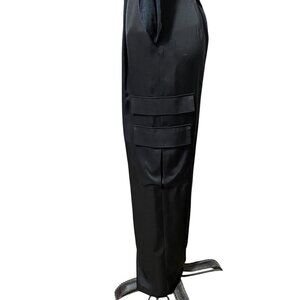 Shoe Dazzle Black Satin Wide Leg Baggy Cargo Pant Size Small