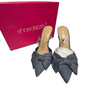 Shoe Dazzle Blue Denim Bow Heels Size 7.5 NWT