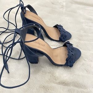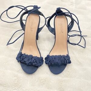 Shoe Dazzle Blue Flower Lace Up Boho Block Heels Size 8.5
