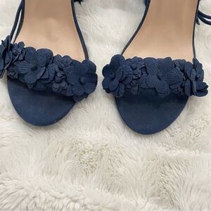 Shoe Dazzle Blue Flower Lace Up Boho Block Heels Size 8.5