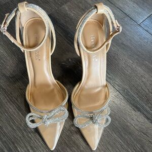 Shoe Dazzle Clear & Tan Heels with Rhinestone Bow size 8