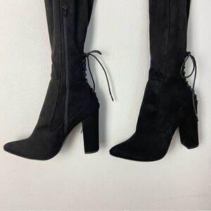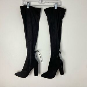 Shoe Dazzle Ivona Black Micro Suede Over the Knee Boots Grunge Streetwear Sz 8.5