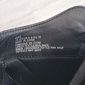 All man-made materials in this two-tone textured faux suede bootie by Shoe Dazzle with a double zip detail, almond toe, and 2.5 inch heel. Great pre-owned condition.