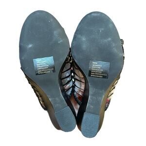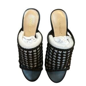 Shoe Dazzle brand heels. All black faux leather. Woven lattice like top. Wide enough to not flop around on your foot. Skinny wedge heel about 5” tall. Don’t think they ever been worn outside by looking at soles. Does have small imperfections on back of heel. Size 7. Can be sent w box by request. Feel free to make a reasonable offer. Or browse & message me for a great bundle deal!