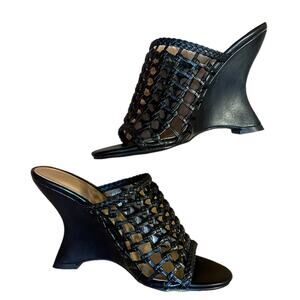 Shoe Dazzle Nancee Black Woven Lattice Wedges Heels New with Imperfections NWI 7