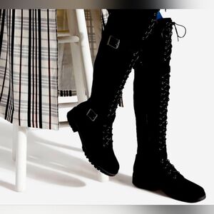 Shoe Dazzle Piper Black Over the Knee Lace-Up Boots Size 6.5 /37