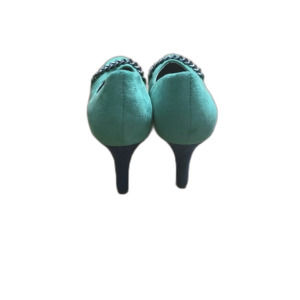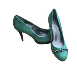Shoe Dazzle Platform Shoe High Heels Women's 10 Green Faux Suede Closed Toe