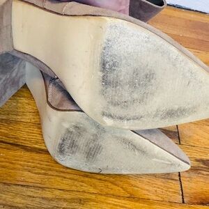 Elevate your style with these stunning tan over-the-knee boots from Shoe Dazzle. Featuring a chunky heel and unique wraparound lacing, these boots offer a perfect blend of sophistication and bohemian charm. The soft suede texture and versatile color make them a must-have addition to any wardrobe.