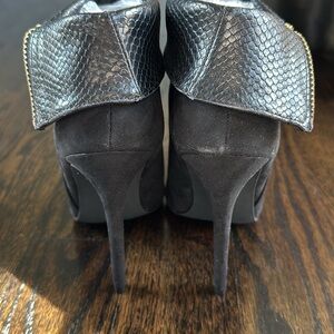 🔵 Shoe Dazzle Western Vibe Black Suede & Faux Snakeskin Ankle Boot Sz 8