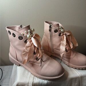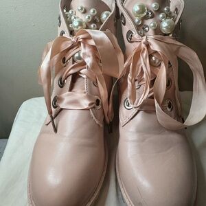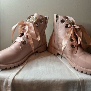 Shoe Dazzle pink vegan leather lace up ankle boots sz 7