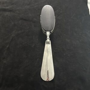A unique vintage item for shoe lovers and collectors alike. This stainless-steel shoe horn and clothes brush combo from the 1960s is a rare find. The expandable design makes it perfect for travel, and it's made of a sturdy metal and wood material that is sure to last.
