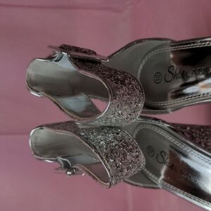Shoe Land Silver Glitter Sparkly Open Toe Ankle Strap No Rumors Heels size 10