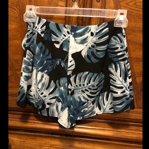 Cute wrap skirt, side zipper and hook closure, tropical print, kind of a blueish green color. EUC!