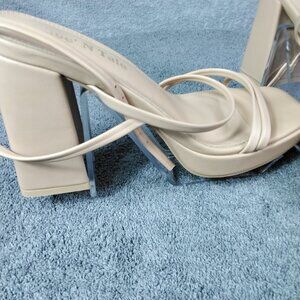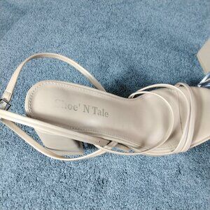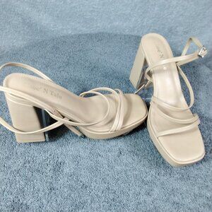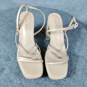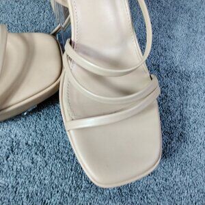 ✨Shoe N Tale Elegant Nude Block Heel Sandals Size 6.5 Platform Strappy Ankle