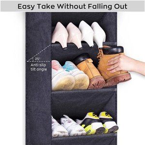 🧿【NO SQUEEZING & DURABLE OXFORD】: The sturdy fiber tubes could prevent over the black door shoe rack from squeezing and avoid deformation and enhance the stability of the pockets. Our shoe hanger made of high-quality oxford fabric which have great tear resistance and much more durable than ordinary mesh or non-woven pockets;