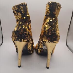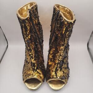 Shoe Republic LA Gold Sequin High Heel Booties Peep Toe Size 6.5