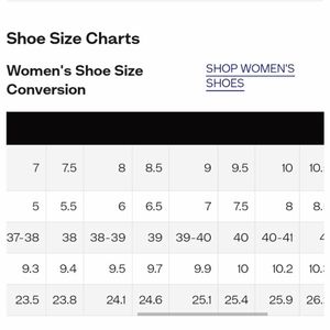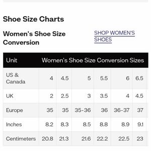 Shoe size conversion chart for
