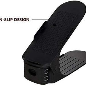 The shoe slots space saver can hold twice shoes as many as before,and provide an excellent space-saving solution for you in the bedroom,wardrobe and shoe rack.