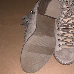 String up shoe boots with open toe and zipper in the side. Brand new, never worn!