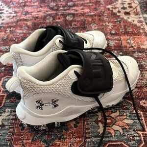 Two pairs of gently used boys size 7 shoes. One pair of Under Armour and one pair of Champions in this bundle
