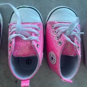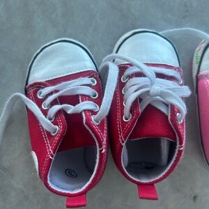 Adorable pink and red kids sneakers perfect for everyday adventures. Comfortable and stylish for little feet.