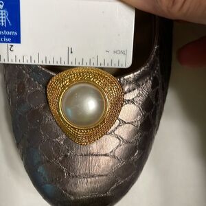 Jewelry for your shoes from Colorful Accents . Brighten up your basic shoes with clip on gold tone and pearl effect. As new but the pearl is a little scratched could be painted a different color (maybe with nail polish) .